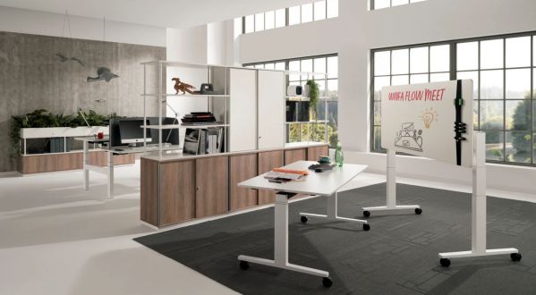 Mobiliar, das auf die Anforderungen agiler Arbeit zugeschnitten sind, spielen eine zentrale Rolle. Rollbare Boards bieten eine hohe Flexibilität, da sie sich beschreiben oder zu einem Gruppentisch zusammenfügen lassen. Stapelbare Hocker und Sitzmöglichkeiten, die flexibel ausgerichtet werden können, ermöglichen eine verbesserte Kommunikation unter den Kolleginnen und Kollegen.