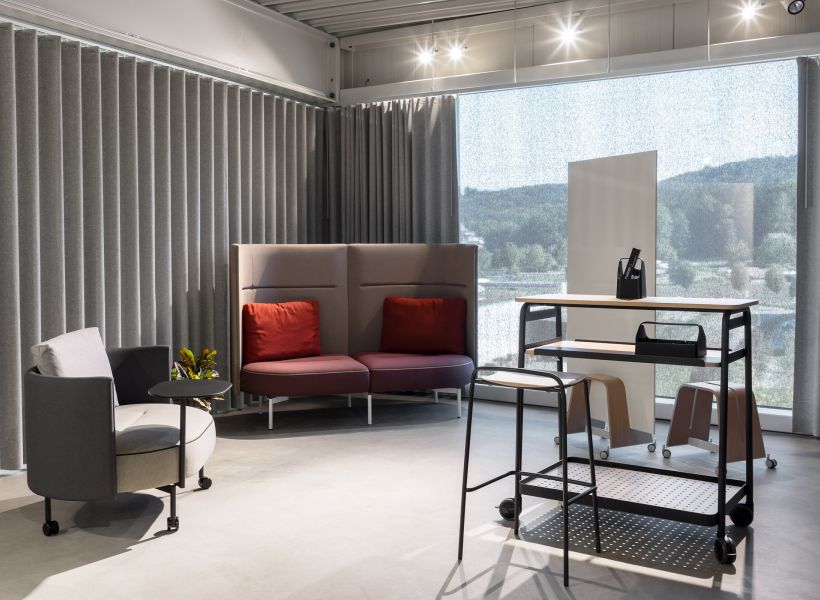 - Beweglichkeit garantiert: Alle Elemente sind leicht, stapelbar und mit Rollen ausgestattet – ideal für agile Arbeitswelten.
