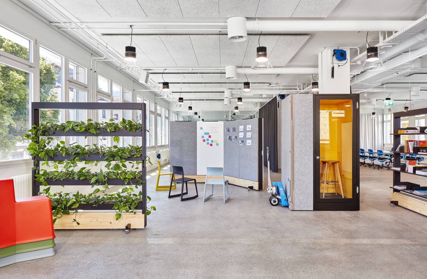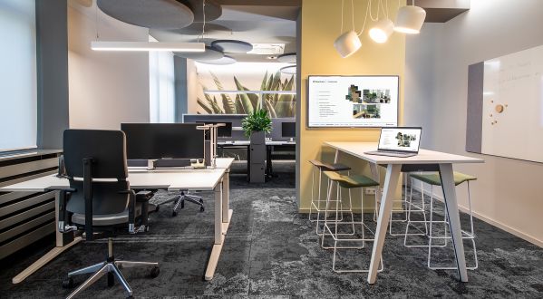 - Räume definieren: Nutzen Sie größere Pflanzen oder Pflanzwände als natürliche Raumteiler. So können Sie ohne harte Abgrenzungen verschiedene Arbeitszonen schaffen, die sowohl für Zusammenarbeit als auch für konzentriertes Arbeiten geeignet sind.