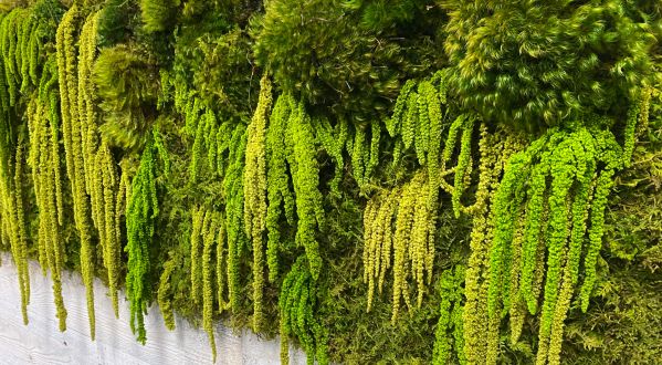 Mooswand: Eine Mooswand bringt nicht nur lebendiges Grün in Büroumgebungen, sondern wirkt auch schallabsorbierend. Dadurch verbessert sie die Raumakustik und schafft eine ruhigere Arbeitsatmosphäre. Mooswände benötigen wenig Pflege und sind daher ideal für Büros, in denen wenig Zeit für die Pflanzenpflege aufgewendet werden kann.