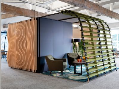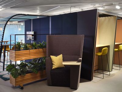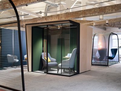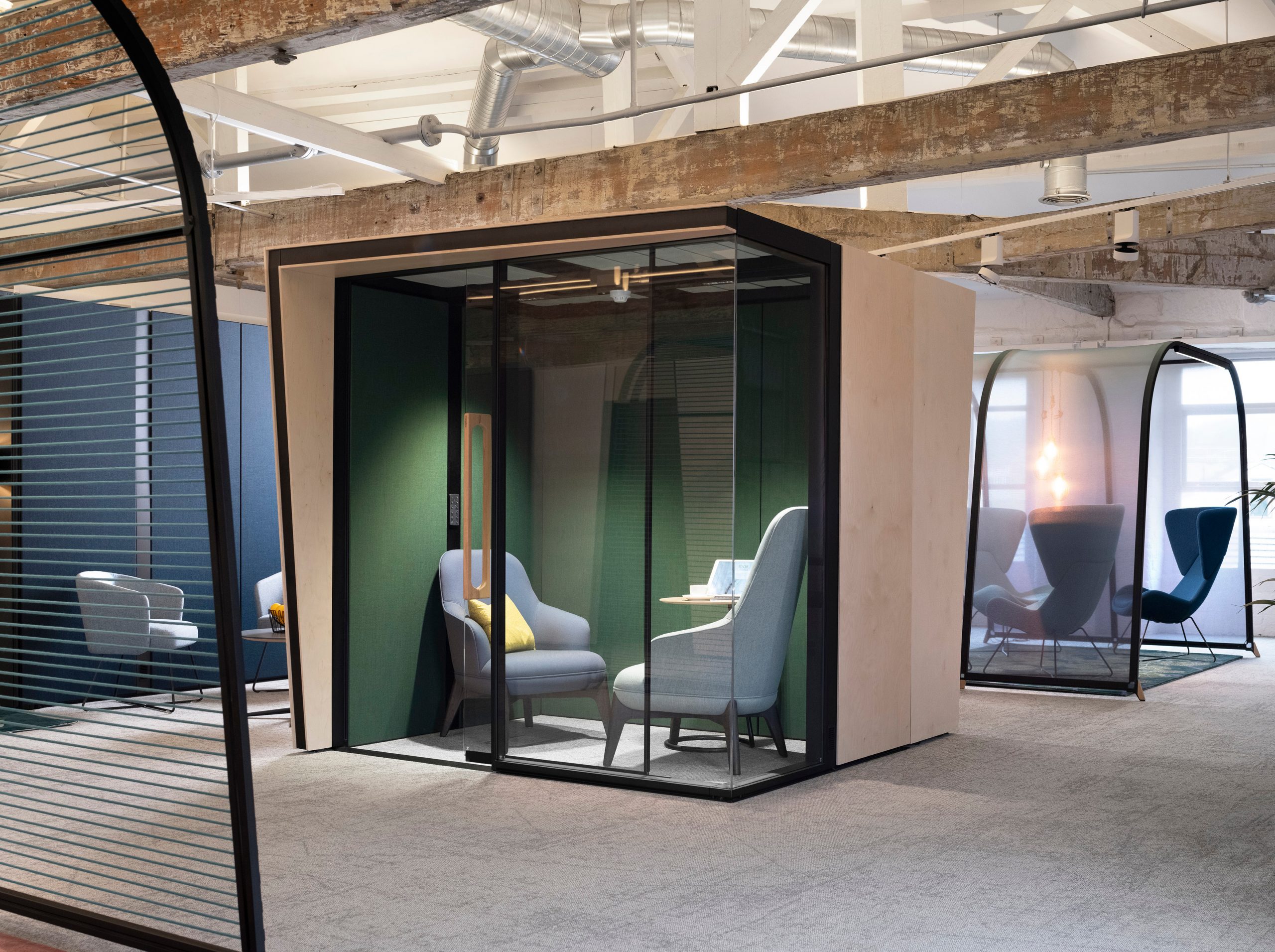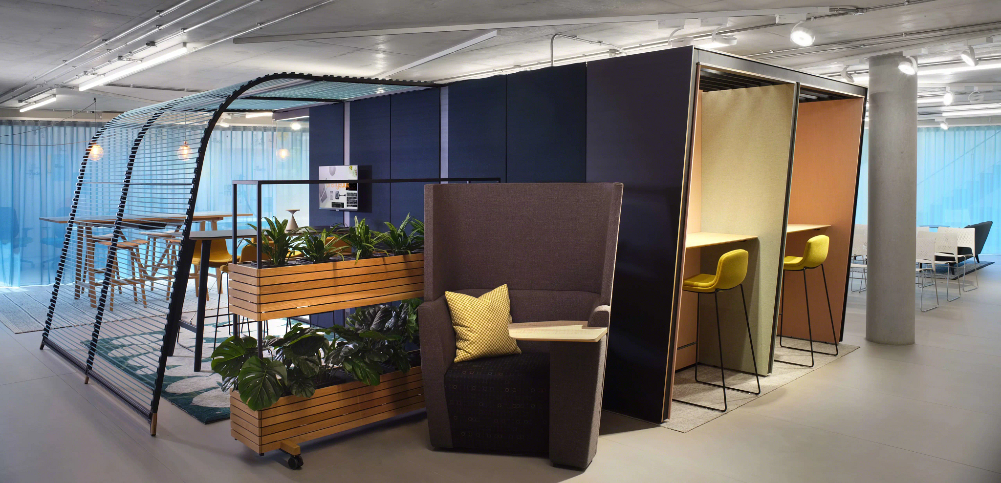 Campers & Dens von Orangebox schaffen flexible, geschützte und halböffentliche Räume im Open Space Office. Sie ermöglichen es den Nutzerinnen und Nutzern, an Orten zu arbeiten, die individuell an ihre Arbeitsweise angepasst sind.