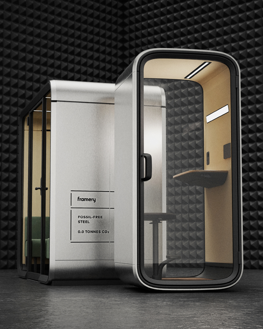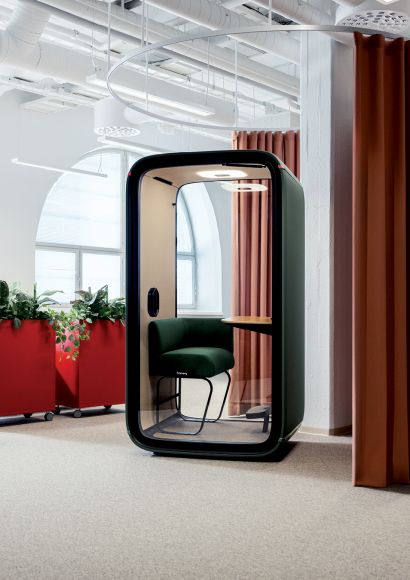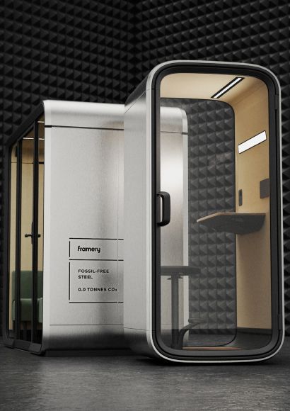 Framery verbindet nachhaltiges Design mit den Anforderungen moderner New-Work-Konzepte. Bei der Entwicklung der Telefonkabinen und Meeting Pods legt das Unternehmen viel Wert auf ressourcenschonende Materialien und eine langlebige, modulare Bauweise. So kommt beispielweise weniger Holz zum Einsatz, während das Unternehmen den Anteil an recyceltem Stahl und Aluminium um 20 % sowie bei Recycling-Glas um 29 % erhöht hat. Stoffe, die in den Raum-in-Raum-Lösungen verarbeitet werden, sind zu aus 80 % recyceltem Kunststoff gefertigt. Die Pods sind zu 100 % recycelbar und haben im Vergleich zu früheren Modellen eine bessere CO2-Bilanz. Die neuen intelligenten Pods sind für mehrere Jahrzehnte ausgelegt und weisen während ihres Lebenszyklus im Durchschnitt 30 % geringere Emissionen auf. Damit bekennt sich Framery klar zu nachhaltigem Fortschritt und einer verantwortungsvoller Gestaltung von Arbeitswelten.