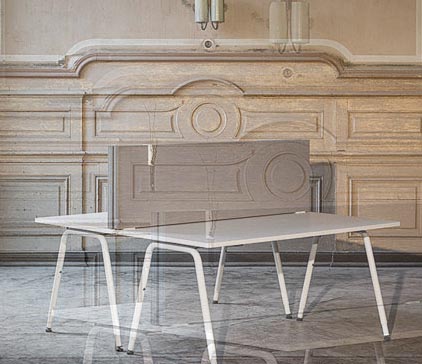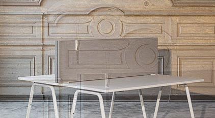 Teamarbeitsplätze mit schallabsorbierendem Tischaufsatz bieten eine optimale Lösung für eine produktive und ruhige Officeumgebung. Die Mood Line Wände zeichnen sich durch einen intelligenten, mehrschichtigen Aufbau aus, der beste akustische Eigenschaften garantiert. Angepasst an unterschiedliche raumakustische Anforderungen bieten sie unabhängig von der Wandstärke einen hohen Schallschutz am Arbeitsplatz.