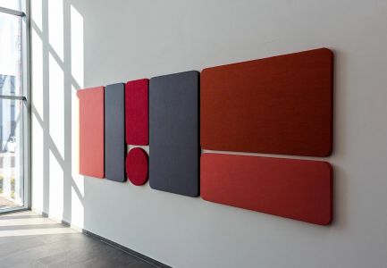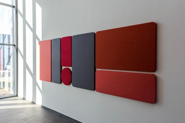 Dekoration an der Wand mit Schallschutz reduziert Lärm, verbessert die Akustik und schafft eine angenehme Arbeitsumgebung. Ein Beispiel sind die Absorber der Serie Screen50, die sowohl zur Schallabsorption als auch zur Raumgestaltung beitragen. In verschiedenen Größen, Formaten und Farben erhältlich, bieten sie vielseitige Einsatzmöglichkeiten für kreative und schallabsorbierende Wandgestaltungen.
