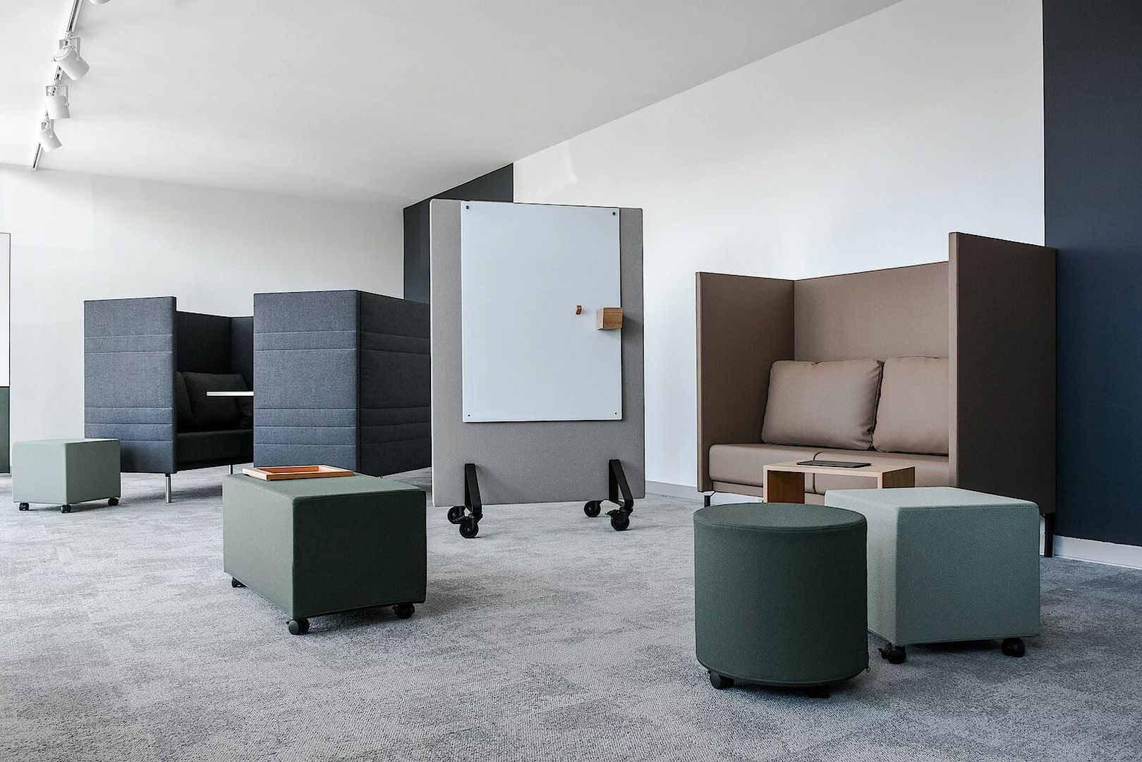 - Gestalten Sie Rückzugsorte und Ruhebereiche: Schaffen Sie separate, ruhige Zonen, in denen Mitarbeitende ungestört arbeiten können. Verwenden Sie Raum-in-Raum-Lösungen oder geschlossene Kabinen, die Schall isolieren und Privatsphäre bieten.