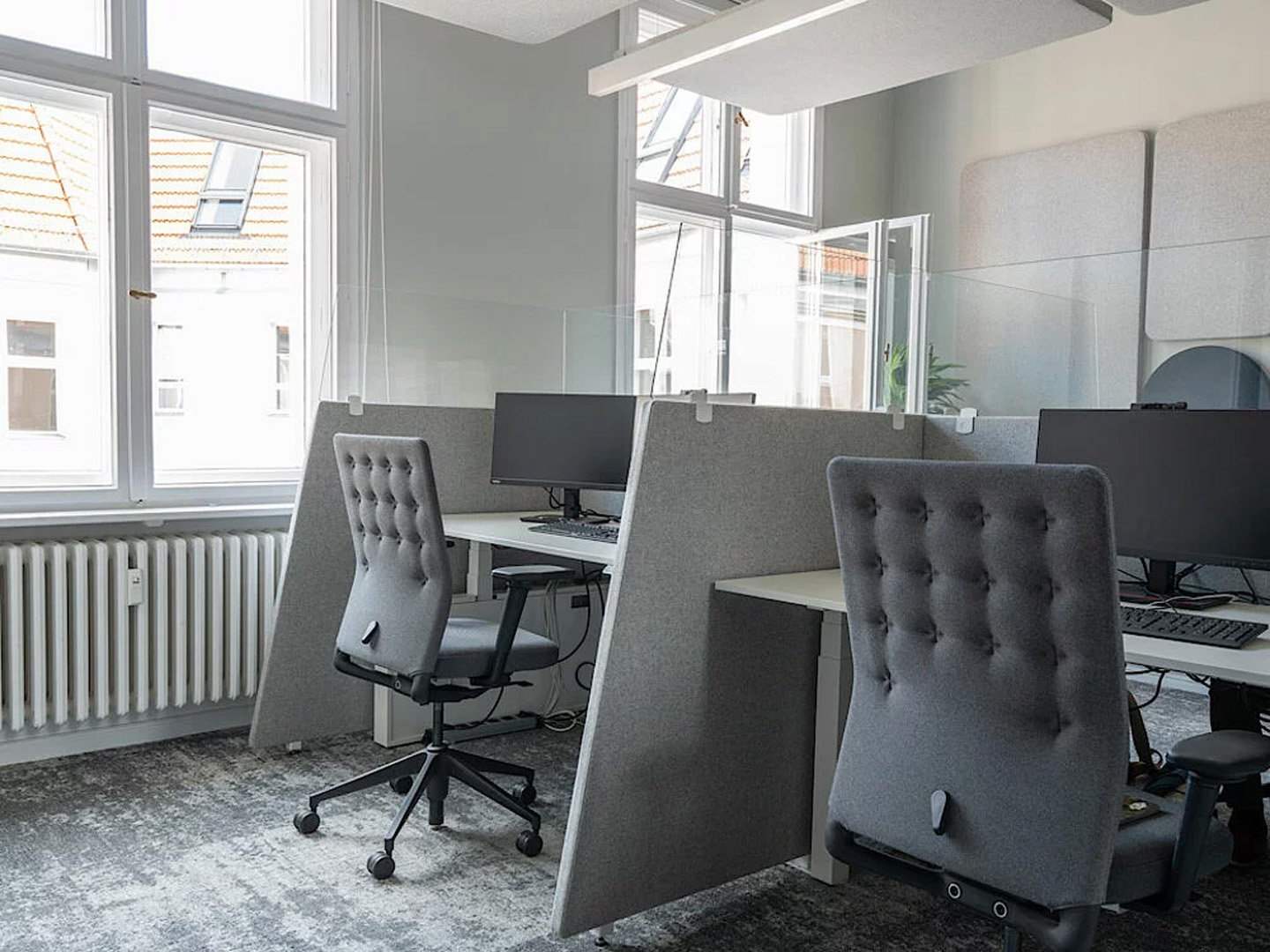 Teppiche und Vorhänge spielen ebenfalls eine wichtige Rolle beim Schallschutz in Büros. Teppiche können Schall absorbieren und verhindern, dass Geräusche von harten Bodenbelägen reflektiert werden. Vorhänge aus schallabsorbierenden Stoffen können zusätzlich den Lärmpegel senken, indem sie Schallwellen abfangen und die Nachhallzeit verkürzen. Diese Materialien sind besonders nützlich in Räumen mit großen Fensterflächen und hohen Decken.
