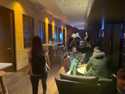 In einem Kurzvortrag stellte Marco Dimpker den Umbau der Club Lounge vor, den Vitra in den Jahren 2015 und 2016 begleitete. Mit dem neuen Einrichtungskonzept wollte man starre Sofa-Landschaften in U-Form auflösen. Mit dem neuen Logen-Konzept wollte man frische, neue Unternehmen gewinnen. Die Einrichtung sollte zu Kommunikation und Begegnung einladen, den Host Sportfive, Hertha BS in einem modernen, zeitgemäßen Look repräsentieren. Die hochwertigen, repräsentativen Möbel von Vitra unterstreichen dies. Verschiedene Sitz- sowie Steh-Sitzgelegenheiten bieten den Gästen alle Möglichkeiten, miteinander ins Gespräch zu kommen.